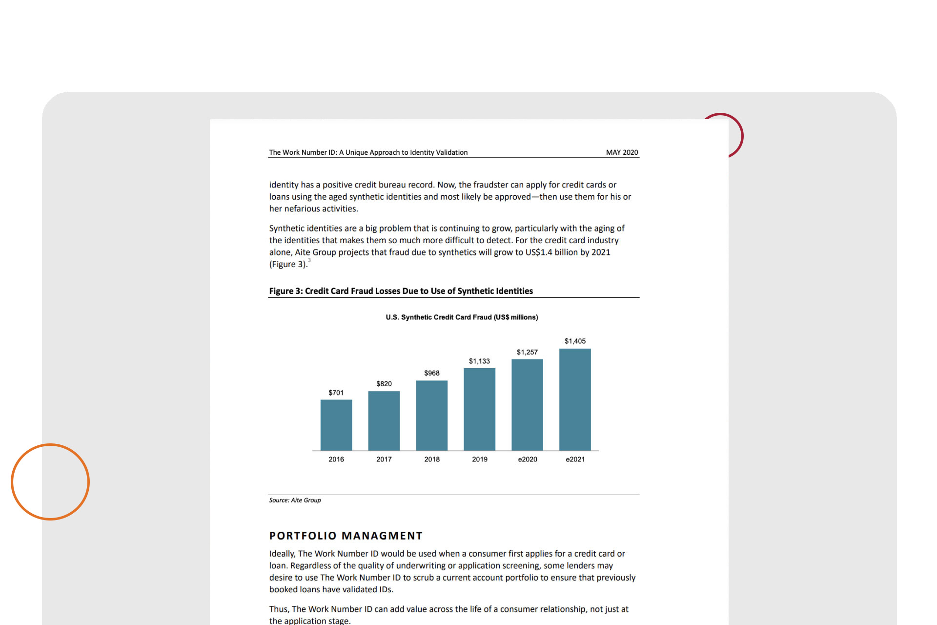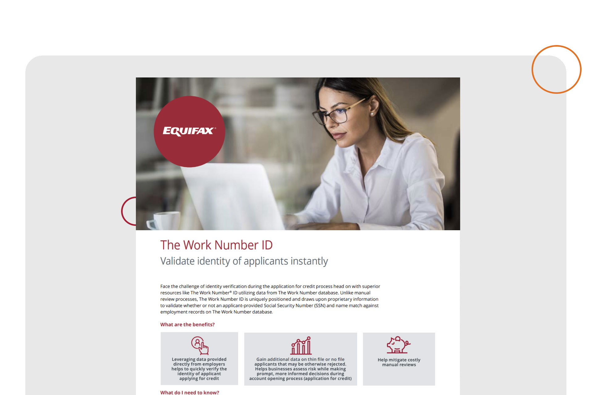 The Work Number ID instantly draws upon proprietary information to validate whether or not an applicant-provided Social Security Number (SSN) matches against a name and SSN on The Work Number database.